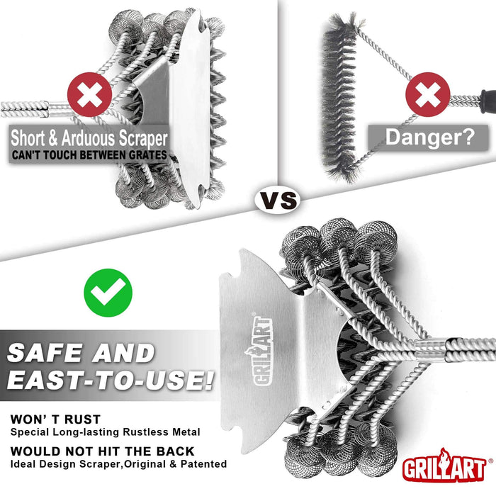 GRILLART Grill Brush Bristle Free - Safe BBQ Cleaning Grill Brush and Scraper - 18" Best Stainless Steel