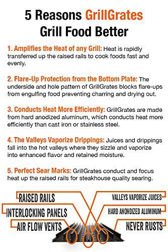 - NEVER RUSTS: Made of hard anodized aluminum, GrillGrates will never rust. Harder than steel, able to withstand heat up to 900degrees