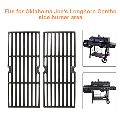 GRISUN Grill Grates for Oklahoma Joe's Longhorn Combo Grill, for Charcoal Firebox Area, Nexgrill 720 0826, Charbroil 461251314, Cast Iron Grill Grids for Longhorn Combo Charcoal/Gas Smoker 2 PCS