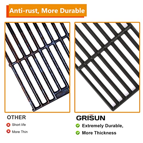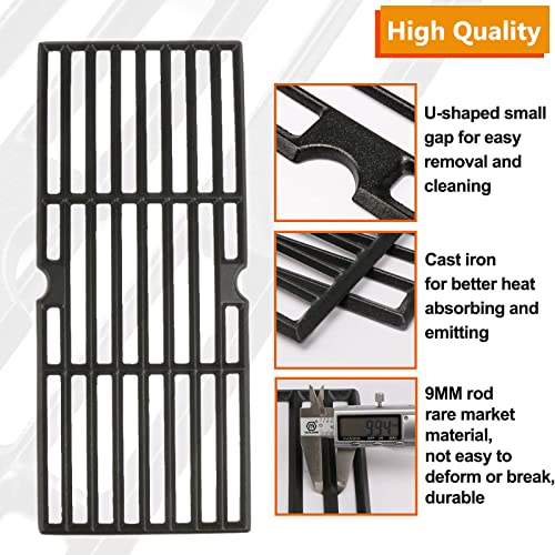- [Durable Material] - Heavy-duty matte enamel cast iron cooking grates replacement parts. Matt enameled cast iron prolongs its life and ensures its long-lasting use. Non-stick material makes it easy to clean up. [Outstanding BBQ Effect] - The process of heating and releasing heat of the cast iron grate is longer, and the grilling effect is better, leaving beautiful grill marks on the food making you more appetite.