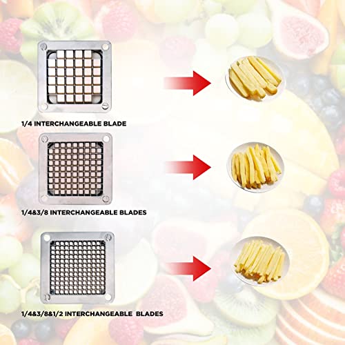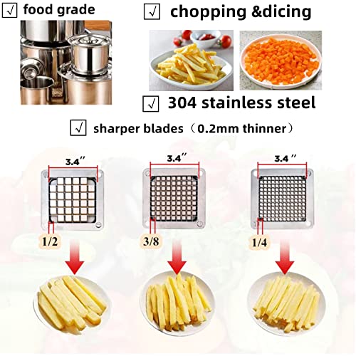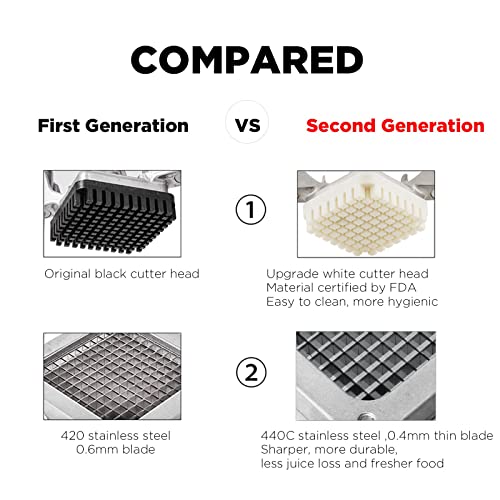 - 【Easy to Operate】Easy to use. Simply place the vegetables on the blade assembly and pull down the pusher block and the vegetables or fruits will be chopped or diced quickly into different sizes according to different blades.How efficient and time-saving!