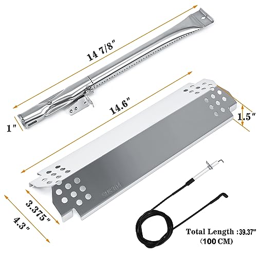 - Burner & Heat Plate Details - The burners are made of 304 non-magnetic stainless steel, measuring 14 7/8" x 1". ► The heat plates are also constructed from 304 non-magnetic stainless steel, measuring L 14.6" x W 4.3" x H 1.5. ► The package includes 5 burners, 5 heat plates, and 5 igniters. ► Before purchasing, please compare the size and model of the original part. ► Quality issues? Free replacements within 30 days.