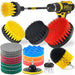 - * * ✔ 20 Piece Drill Cleaning Attachment Set(Brush&Scouring Pads&Scrub Sponge), Includes: 6 shape of Medium drill power scrubber brushes, 9 Piece different stiffnesses Scouring pads,3 Piece scrub sponge and 4 inch backer and 1 Extension rod..