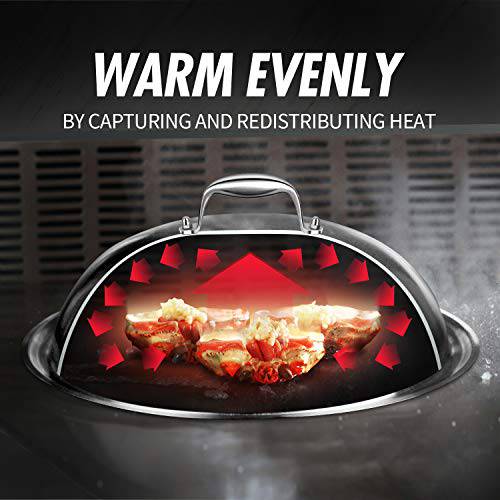 This stainless basting dome is a necessity to any home-chef that wants to steam veggies, melt cheese, or blast their meat with some oil. It's big, it's dish wash safe. (The Dimension: 12.5inch diameter and 4.7inch height include the handle)