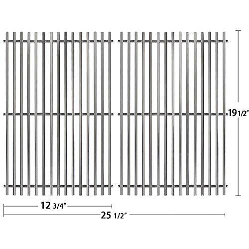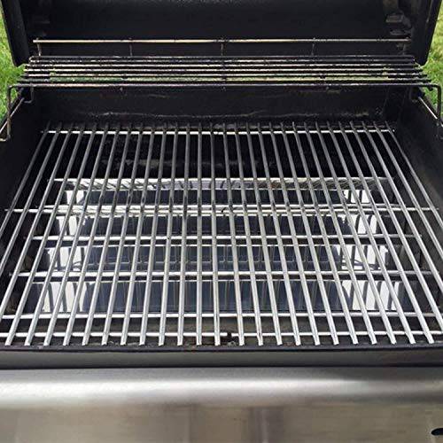 - 【DURABLE】Made of stainless steel, much longer life than porcelain grill grates. 【SAFETY】The end of the rods with a round design that don't hurt your hands. 【NON-STICK】Before you cook on them, take some high temperature oil such as Peanut or Grape Seed, soak a paper towel and rub oil on the grills, and let the oil burn off first. The food does not stick to the grills.