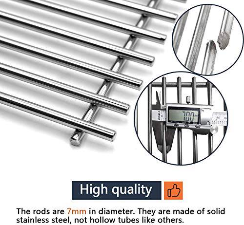 - 【HEALTH and SANITARY】Constructed from 100% food grade 304 stainless steel, not easy to get rusty, resist corrosion. The cooking grill grates passed SGS testing to meet or exceed relevant standards, they are healthier. 【OUTSTANDING QUALITY and HEAVY】Made up of solid rods of stainless, not hollow tubes like its competitors. Materials are full, weighs up to 10 pounds. The rods are 7 mm in diameter.