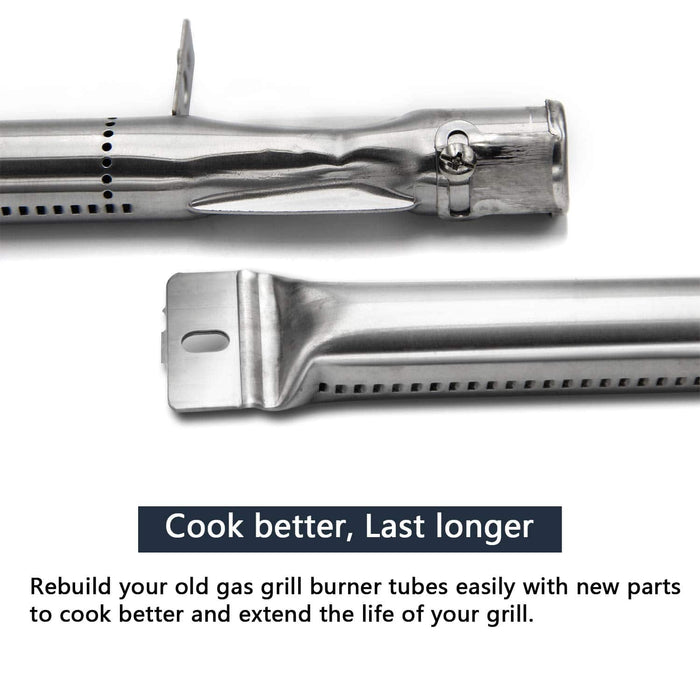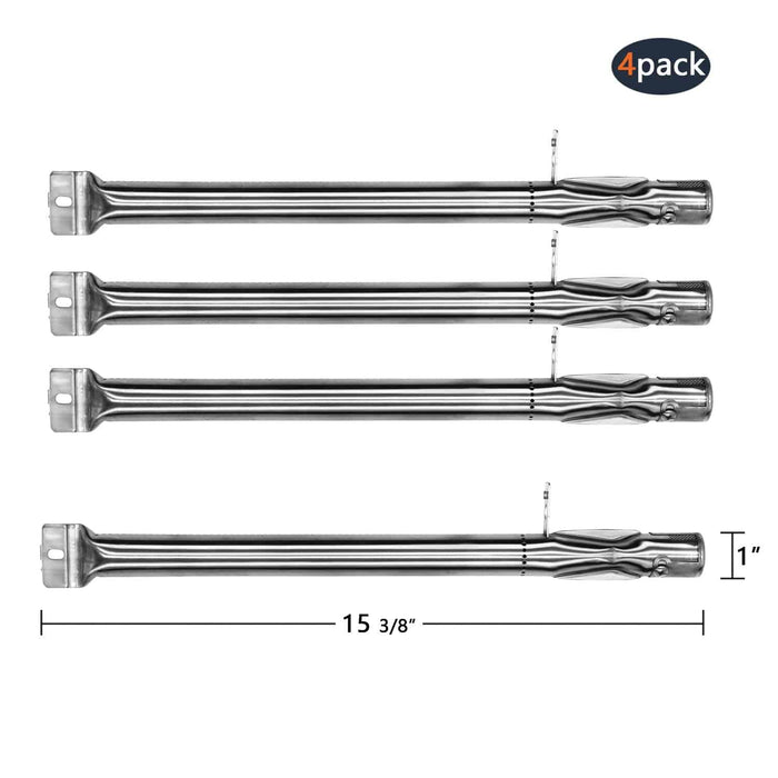 - Durable stainless steel burner dimension: 15 3/8" x 1", 4-pack. Cooks better! Lasts longer; Extend the life of your grill.