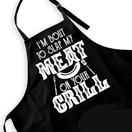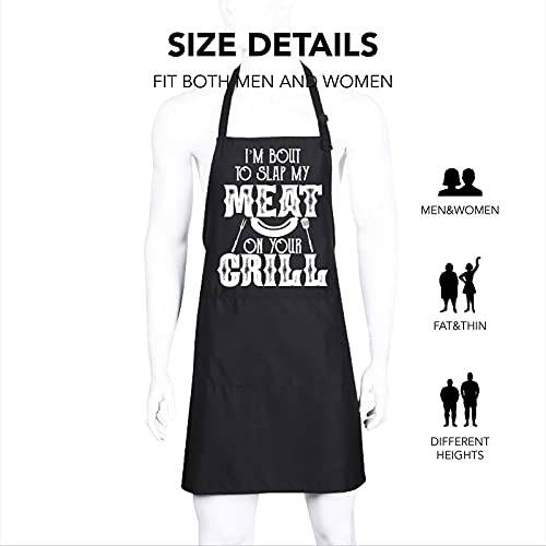 Ihopes Funny BBQ Apron for Men Dad,Black Grill Apron with 2 Pockets and Adjustable Neck Strap,Perfect Gifts for Birthday/Christmas/Thanksgiving, Large