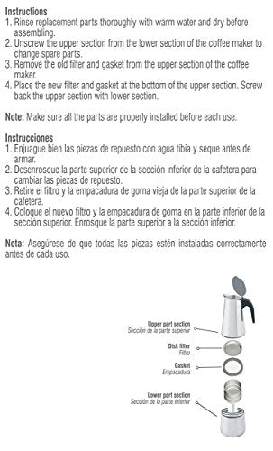 Details: Replacement Gasket/Filter for 6 Cup Stainless Steel Stove top Coffee Maker