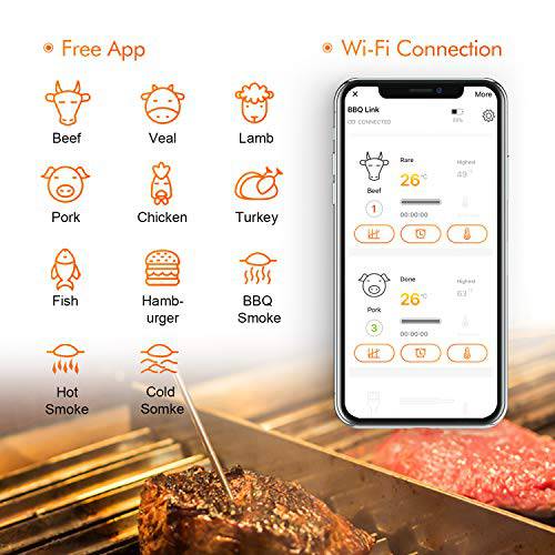 Inkbird Smart WiFi Meat Thermometer IBBQ-4T, with 4 Colored Probes