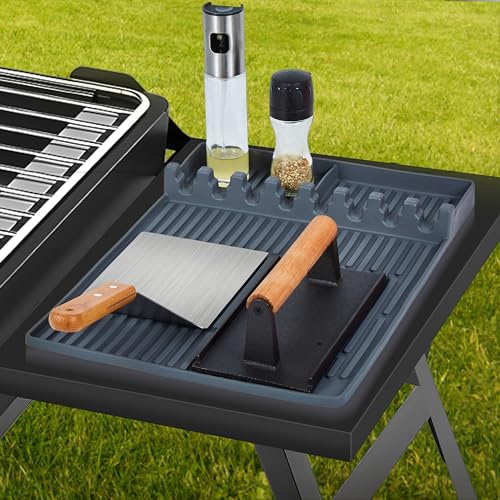 ISSEVE Silicone Griddle Tools Mat for Blackstone, Large Silicone Spatula Mat with Drip Pad, Grill BBQ Caddy Utensils Holder for Kitchen, Cooking & Countertop, Griddle Accessories for Blackstone Grey