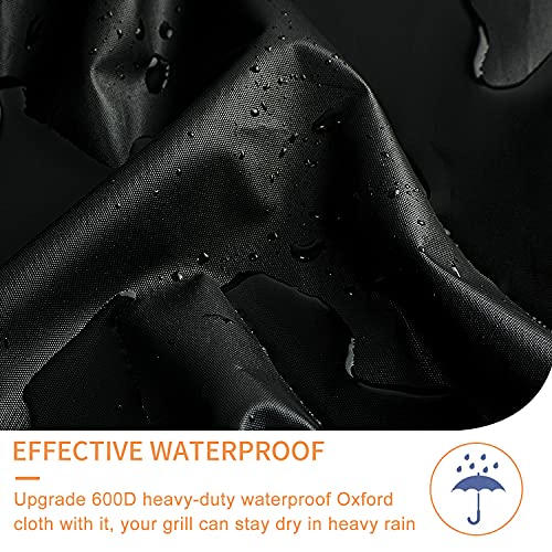 - Environmental resistance - Premium heavy duty polyester fabric with waterproof and UV protection to help protect your grill from the elements against. There are large Velcro straps that hold the cover in place and will not be blown away by the wind.