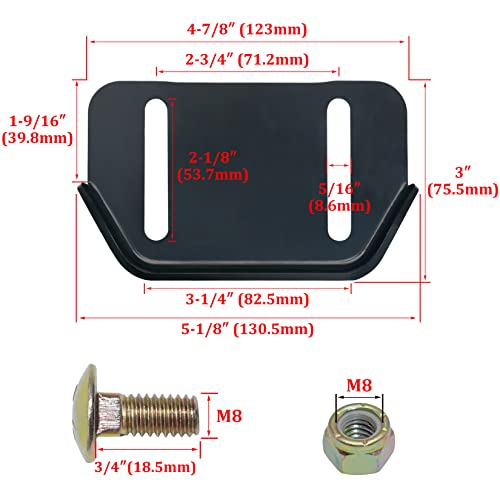 • Size: Skid Shoe Length: 4-7/8", Bolt Holes Center to Center: 2-3/4", , Width: 3". Please see second picture for measurement details.