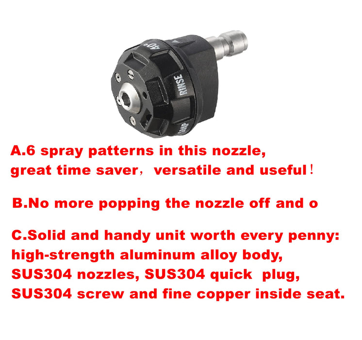 - Undoubtedly This Well-Designed Nozzle Will Save You UNIMAGINABLE Time During Regular Pressure Cleaning Job if You Dislike Carry Heavy Gun&hose and Change Different Angle Nozzles Which Waste Your Time