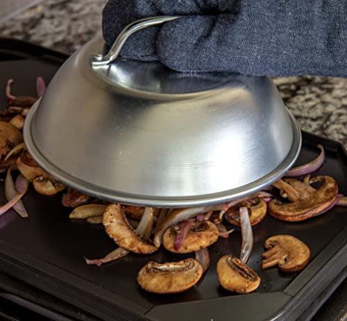 - Spun aluminum dome captures heat to melt cheese without overcooking the meat