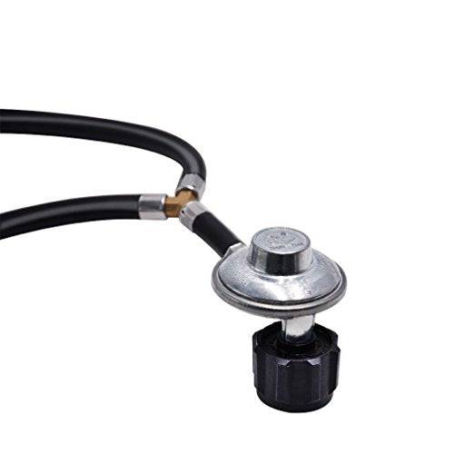 Details: Onlyfire 36 inch QCC1 propane replacement regulator with double hoses have a 3/8" flare connection. Installs quickly and easily; Replaces damaged hoses and regulators on all CSA/CE certified LP gas grills with threaded connectors. Widely used in low pressure of the gas grill, heater and fire pit table. Fits all type-1 (QCC-1) tank connections and has excess flow protection for your safety. The hose is a type-1 (QCC-1) tank connection x 3/8" female flare swivel nut. Rated at max 80000 BTU per hour. Note: Check your product and its instruction manual for the proper replacement parts before attaching this regulator to any L.P. gas product. Attention: For your safety, please keep the hose away from high temperature. Note:The hose period of use:1 year.The customer must ensure the hose without any damage before use
