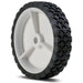 Details: This wheel is 8 x 175, has diamond tread design and an offset, plastic hub.