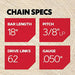 - Durable, low-kickback, low-vibration chain helps reduce user fatigue for increased periods of work- For all chainsaws brands that run 3/8 Inch Pitch, .050 Inch (1.3 mm) gauge, 62 drive links