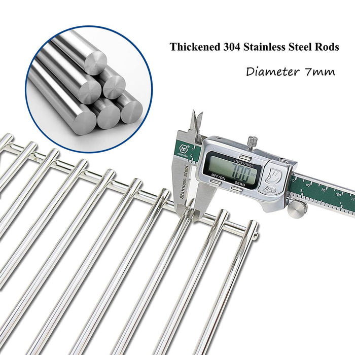 - 【Easy to Clean】Grill grate with smooth surface is free of sharp edges and the end of the rods with a round design that don't hurt your hands. Unlike the cast iron grill that requires more effort to keep clean and tidy, this stainless steel grill grate is non-stick and can be easily cleaned just with a brush.