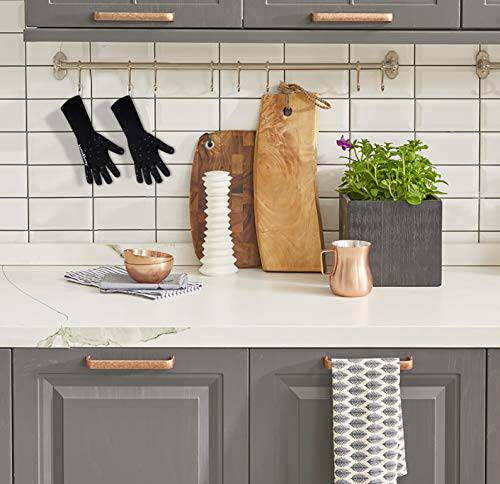 • FOREARM PROTECTION: We went even a step further and increased the length of our sleeves an additional 2” above average so you can say goodbye to burns not just on your wrists, but even on your forearms whilst hitting oven rack edges, openings and doors, as well as hot oil splashes when frying! Our Long Oven Mitts are also Level 2 Cut-Resistant, protecting from everyday scrapes and cuts, and contain a hanging hook inside the sleeve for handy storage.