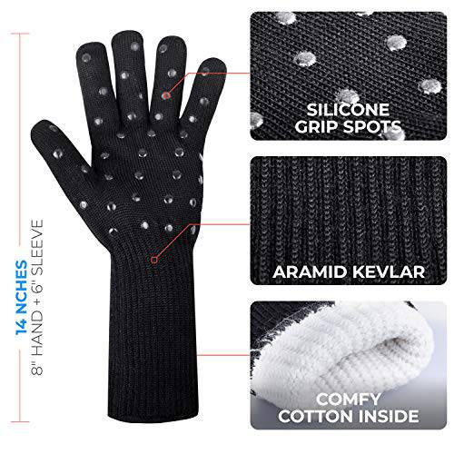 • FEEL INVINCIBLE: Produced using 3 Layers of Synthetic Kevlar, these Oven Mitts Heat Resistant can withstand any kind of heat up to 932°F (500°C). That means you’re covered for any cooking, baking, grilling, frying as well as handling that anxiety inducing cast iron skillet, dutch oven, casserole handle, cookie sheet, pot lid and more! No matter what your need, our Heat Resistant Gloves will leave you wanting to put them on time after time! Don’t say I didn’t warn you!