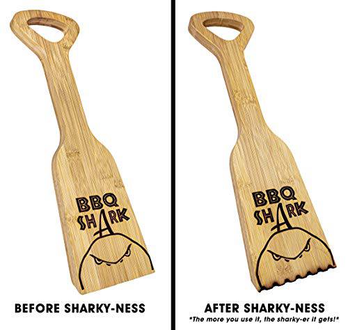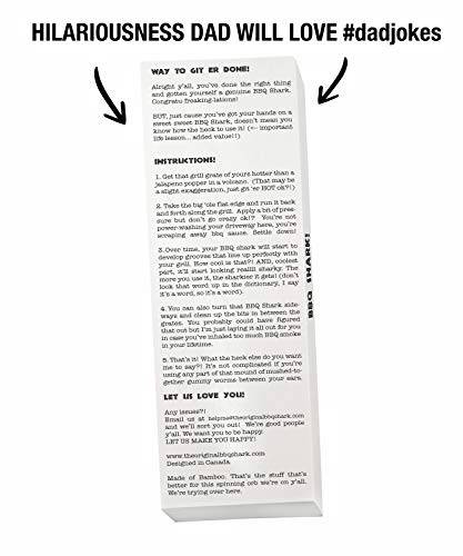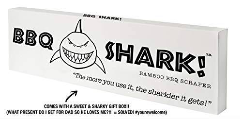 - AWESOME GIFT BOX INCLUDED with useful (and hilarious) instructions. No more wondering what to get Dad as a present. BBQ Shark is a PREMIUM BBQ scraper that he will LOVE! (and he’ll love you more as a result. #PleaseLoveMeDad)