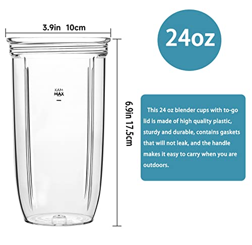 - 🍹【24-oz Blender Cup】-- This 24 oz blender cups with to-go lid is made of high quality plastic, sturdy and durable, contains gaskets that will not leak, and the handle makes it easy to carry when you are outdoors.