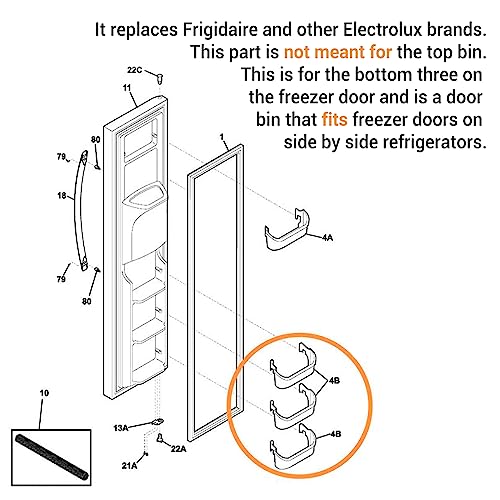 - 👍 This door bin freezer door bin replaces part# 240351601, AP2115974, 240351607, 891154, AH430027, EA430027, PS430027. Work with Frigidaire and other Elect-rolux brands.
