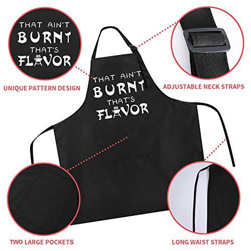✔GREAT NOVELTY FUNNY GIFT FOR HIM. Are you still trying to find a unique gift besides shirts, ties, socks and mugs? Our stylish aprons have the hilarious saying ”That ain't burnt that's flavor”. It is a perfect gift for a loved male like father, husband, grandpa, brother, father in law, boyfriend or a close friend. Prepare to have a really good laugh with your loved ones.