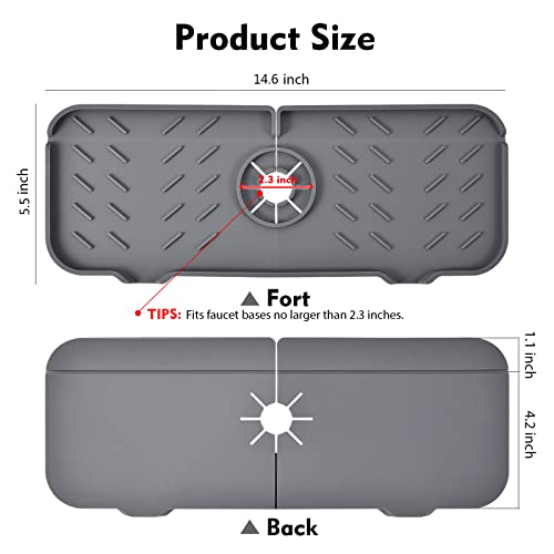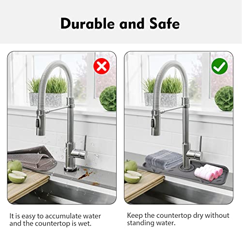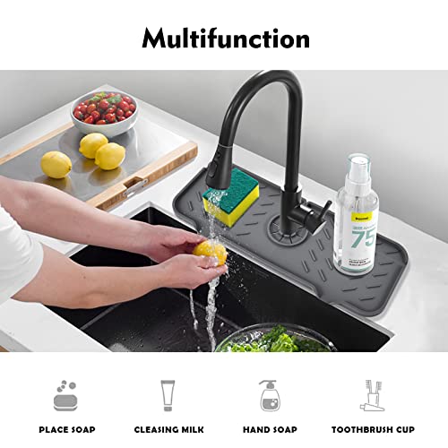 Silicone Faucet Mat for Kitchen, Sink Splash Guard, Bathroom Faucet Water Catcher Mat, Sink Draining Pad Behind Faucet, VENMATE Keep Drying Kitchen Accessories (Grey (14.6" x 5.5"))