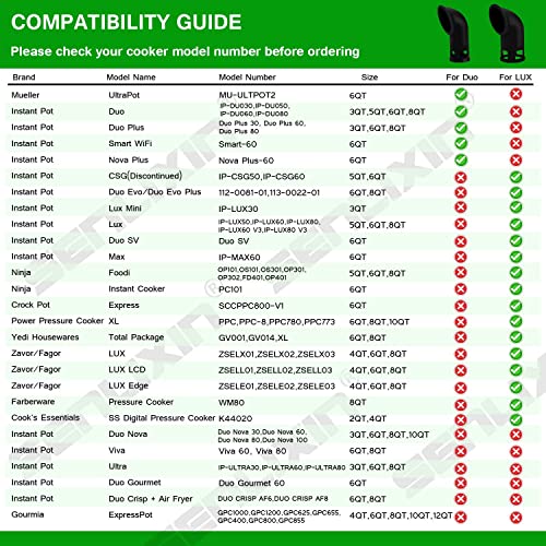 - ✔ | WIDE COMPATIBILITY | - The silicone steam diverter is compatible with all sizes (3 Qt, 5 Qt, 6 Qt, 8 Qt) Instant Pot DUO, DUO Plus, Nova Plus, Smart Wifi, SV, Evo, Ninja Foodi, Crockpot, Power Cooker XL and Mueller UltraPot. Please check our compatibility guide before placing an order.