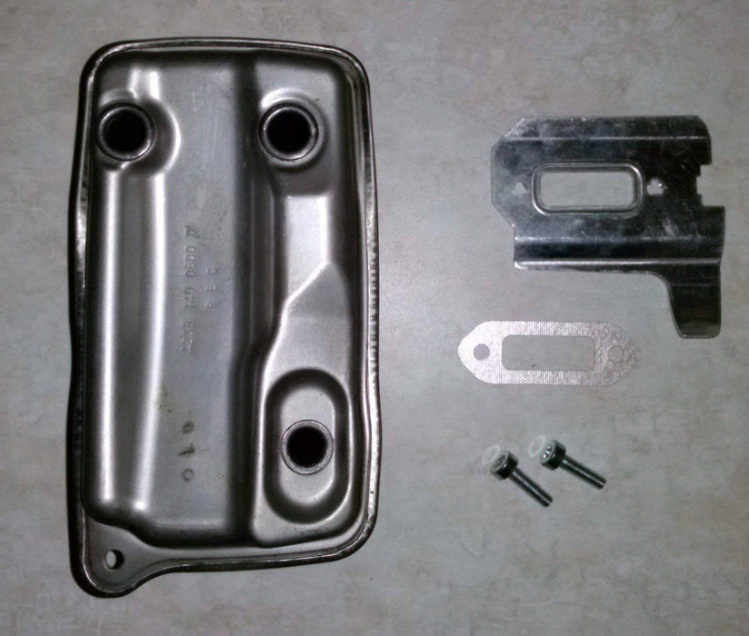 Brand New OEM Spec Replacement Exhaust Muffler Assembly for STIHL TS410, TS420 Concrete Saws. Includes Muffler Gasket and Cooling Plate. Replaces Stihl Part Number(s) 4238 140 0611, 42381400611.