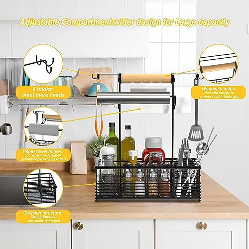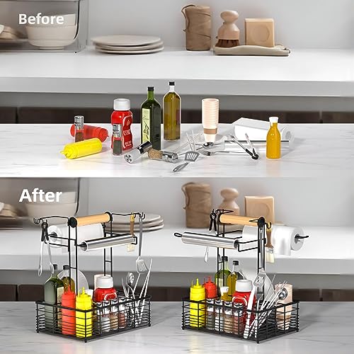 SUHEYU BBQ Grill Caddy Condiment Caddy, Picnic Utensil Caddy BBQ Organizer with Paper Towel Holder, Suitable for Camping Outdoor Cooking Kitchen Utensil Kitchen Caddy Barbecue Accessories (Black)