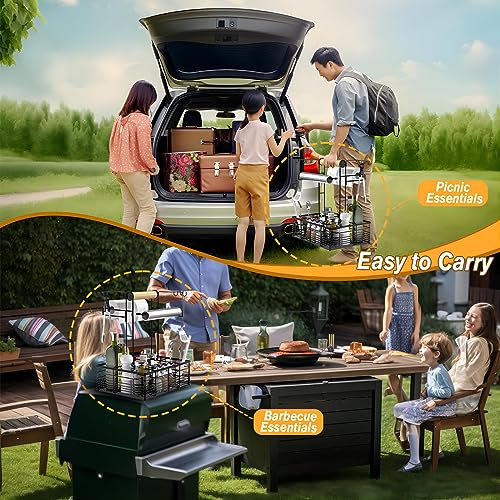 - 【Multiple Use Scenarios】This metal condiment organizer not only can be use as grilling caddy, picnic caddy, camping caddy, condiment dispenser caddy, flatware utensils holder, but also can be use as cleaning caddy, meet your different need. It’s the best tool box for BBQ, picnic, camping, RV, desktop organization, kitchen storage.