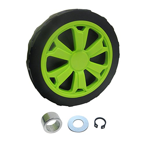 Details: Sun Joe MJ403E-RRWHEEL MJ403E electric lawn mower rear wheel assembly. Use to replace rear wheel on Sun Joe model MJ403E.