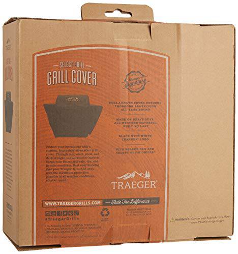 Details: The Trager full-length Select grill cover is designed to keep your grill protected from the elements no matter the season. The all-weather, water resistant material ensures your grill stays dry so your grill stays in tip-top shape for all the grilling and smoking years to come.