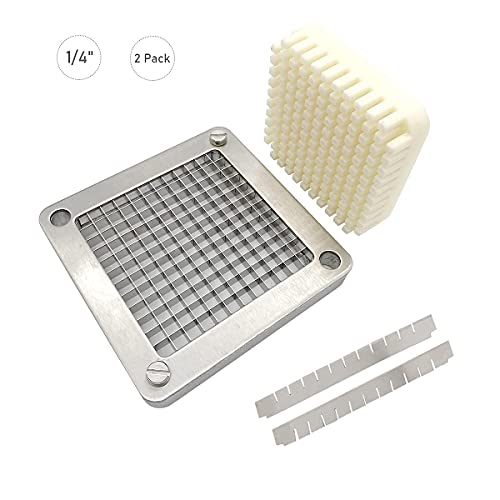 TUNTROL 2pcs 1/4" Replacement Blade Set for Commercial Vegetable Chopper, Stainless Steel Interchangeable Blade & Pusher Block Set for Fruit Dicer Cutter