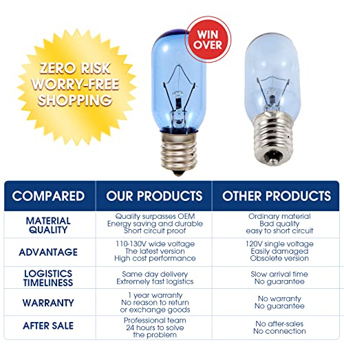 • 【After-Sales Service】Fast delivery and 40Watt Refrigerator Light Bulb lifetime warranty -refund or replace with a new product. Buy with confidence. Add to Cart Now! Any questions or unsatisfied, we will reply to you, return or exchange for you immediately within 24 hours until to solve your problem.