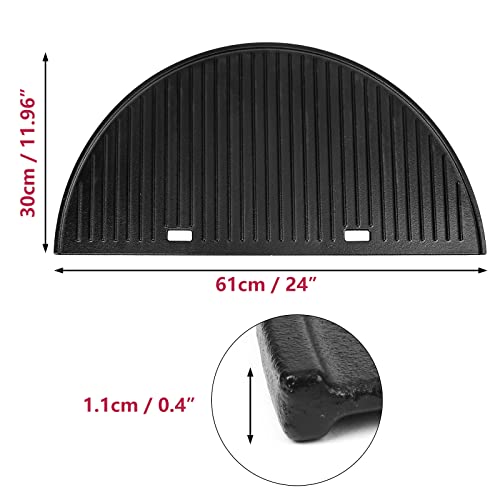 Uniflasy 24” Half Moon Cast Iron Reversible Grill Griddle for Weber Summit Kamado Charcoal Grills and Grill Centers 18501001 18301001 18201001, XL BGE Kamado Grill Replacement Parts