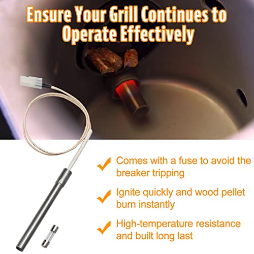 - 【Hot Rod Igniter with Fuse】Comes with a fuse to avoid the breaker tripping. This igniter hot rod replacement for pit boss grill smokers is shrouded by a stainless steel sleeve that heats up for rapid pellet ignition. 200W/120V, 21" wire lead hot rod goes into the base of the firepot quick connecting, which will ensure your grill continues to operate effectively.