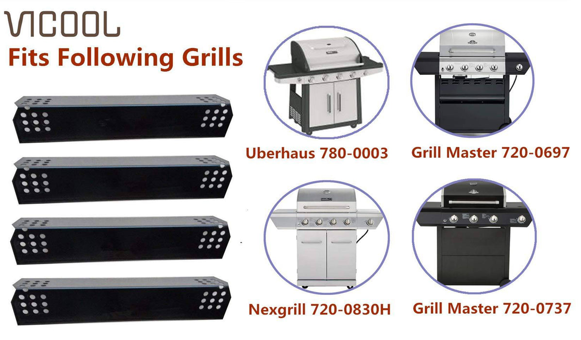 ✔ Vicool hyJ737A (4-pack) Porcelain Steel Heat Plate Replacement for for Gas Grill Models Grill Master 720-0697, Grill Master 720-0737, Uberhaus 780-0003, Nexgrill 720-0830H.