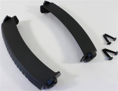 Set of two "Side Handles" for Weber Q1000/1200, "model years 2014 and newer". Overall length is 9" (including the leg insert tabs). Mounting hardware and installations instructions included. Genuine Weber Part.