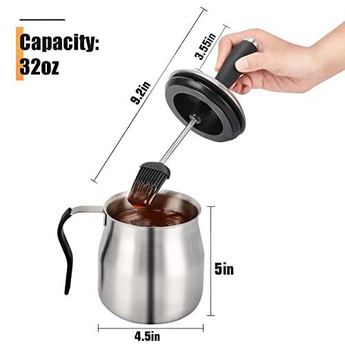 - ✅【Airtight and Heatable Basting Pot】This lidded baster pot can sit atop the grill or stovetop to to keep sauces and marinades warm and ready to baste,Ideal for spreading sauces onto meat and poultry.32 fluid ounces large capacity allows you to avoid refilling sauces frequently.The silicone ring on the lid provides a good sealing performance,keeps sauces warm and fresh.DISHWASHER SAFE.