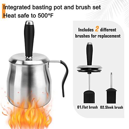 - ✅【Multifunctional Use】Get saucy! With this large capacity basting pot, slathering on the sauce couldn’t be easier.Great for basting beef,chicken,turkey,fish,also ideal for brushing pastry ,pizza and grilling vegetables.Safe on oven, electric cooktop, induction cooktop, gas cooktop and grill.