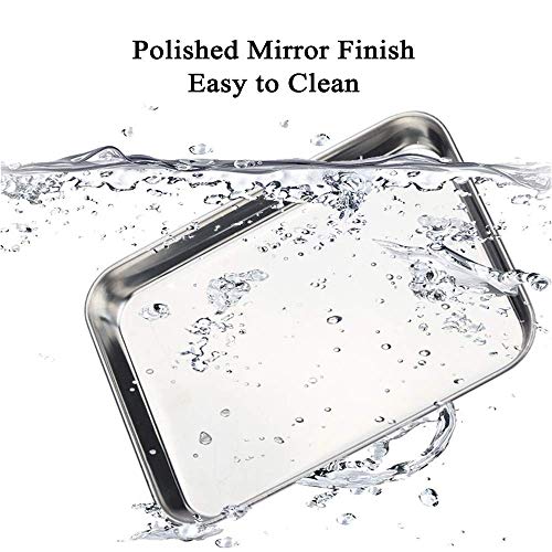 Details: The Stainless Steel Cookie Sheet is made of Premium 430(18/0) stainless steel without chemical coating.No more aluminum into your food, bringing you a healthier cooking experience. SPECIFICATIONS:  Outside Dimension:10.5" x 8" x 1" Material: 430 Stainless steel  Finish: Shiny mirror finish Color:Sliver Weight:0.3 KG Package included:   1* baking sheet :10.5 L x 8 W x 1 H inch Why you choose Stainless steel oven pan   1. Stainless steel pan is more healthier and non-toxic than aluminum pan 2. Stainless steel pan is dishwasher-safe, but aluminum pan not 3. Stainless steel sheet is more easier to clean even hand-wash 4. Stainless steel sheet less stick than aluminum pan TIP for Stainless Steel Q:It is normal phenomenon the pan warp because of the uneven heat.It can return to its original shape when cooled down and doesn't its usage. A: Avoid this is to preheat the pan and add your food after the pan is hot. After-service: 100% SATISFACTION -- 90 days return and money back guarantee, you can purchase without any risk.