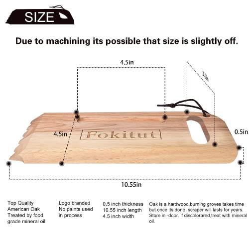 - 🥩Perfect Size & Natural Wood - Our barbeque grill grate cleaner using premium 100% natural wooden, carefully designed to be the perfect size 10.6 x 4.7 with your hand, helping you to scrape debris off the Grill and BBQ grates without damaging them. The natural wood is safe, and doesn’t even leave metal bristles, ensuring safer food.Wood grain of each wood grill scraper is different since it's a natural product.