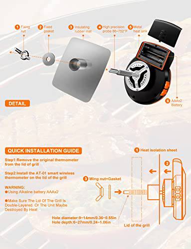- Smart APP control: This wireless Bluetooth barbecue thermometer uses Bluetooth 5.0 technology. Now, you can wirelessly obtain temperature readings up to 160 feet outdoors and 100 feet indoors within the Bluetooth range through your mobile phone, and can be installed on Charcoal Grill, Smoker, Kamado, Portable and other barbecue equipment.