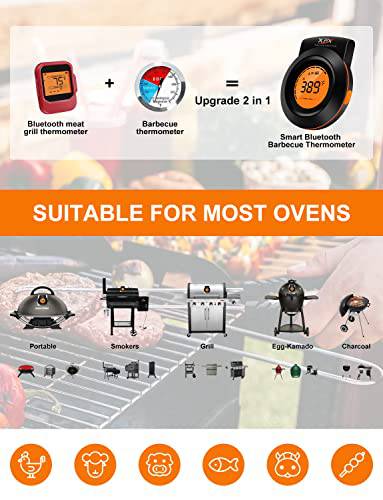 XPX Bluetooth Digital Charcoal Grill Thermometer, Smart Alarm Digital Instant Read Thermometer with 2 Probes