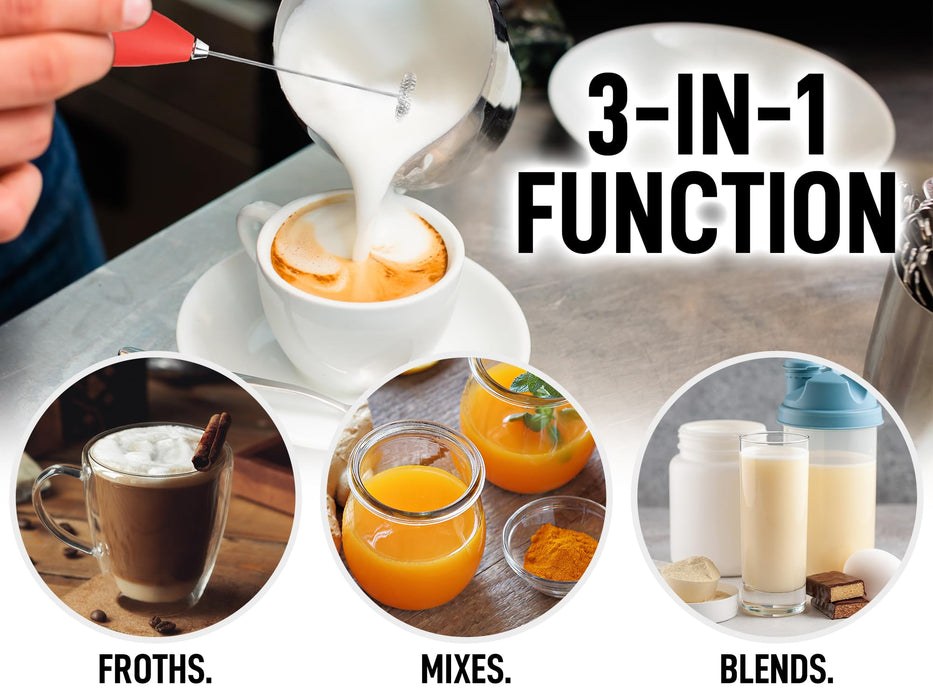 - MATCHA WHISKING, COFFEE & MORE: Works better than a manual matcha whisk for making matcha tea and works far better than fork or whisk for coffee. It works very well to mix nutritious protein powder drinks with no extra container, blender or bottle shaker to wash. Use our mini mixer for your whisking and mixing needs: Give healthy shakes and smoothies a kick by adding powder or egg nog flavor and mixing.