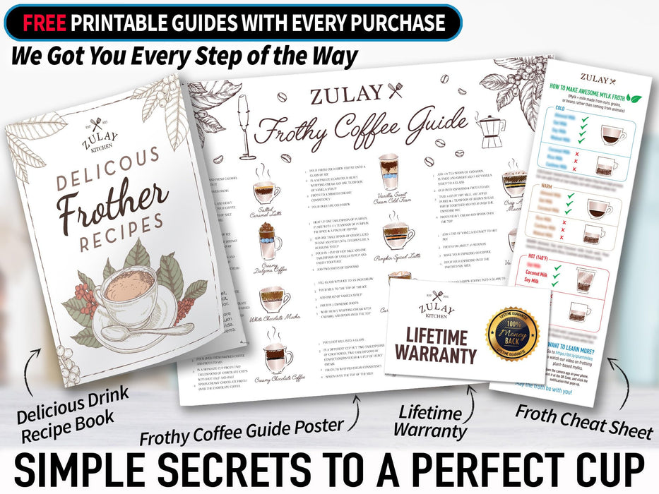 - NO HASSLE, ZULAY GUARANTEE: We love and take pride in our milk frother and we back this up with a lifetime guarantee. Have the confidence that this frother will last, if there are ever any issues, just contact us and we will make it right. Order now and be assured that this product will live up to your expectations, guaranteed.